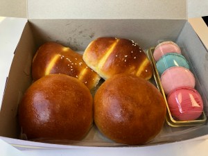 Special: 2 Barbecue Pork Buns, 2 Coconut Buns, and 4 Macarons (Strawberry Cheesecake, Blueberry Marscapone, Lychee Raspberry, Rose Strawberry)