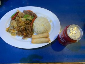Main: Egg Fry Rice with choice of Ginger Beef or Mongolian Beef
